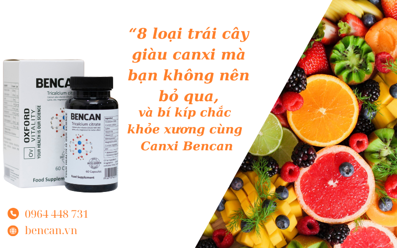 “8 loại trái cây giàu canxi” mà bạn không nên bỏ qua, và bí kíp chắc khỏe xương cùng Canxi Bencan.